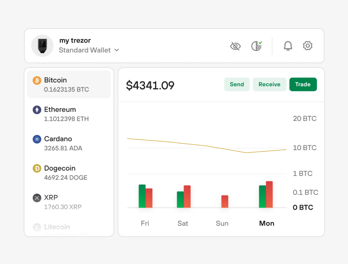 Every transaction on the app requires your explicit confirmation directly on your Trezor hardware wallet.